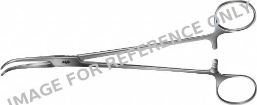 OVERHOLT-GEISSENDOERFER Präparier- u. Fadenklemme, gebogen, 195 mm (7 3/4"), gerieft, Fig. 0