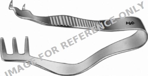 FINSEN Retractor (self-retaining), 50 mm (2"), 2 x 3 prongs, jaw depth: 11 mm, jaw width 9 mm, sharp