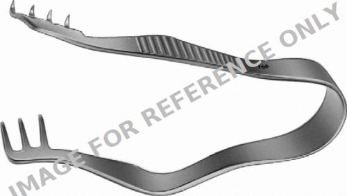 FINSEN Retractor (self-retaining), 70 mm (2 3/4"), 3 x 4 prongs, jaw depth: 11 mm, jaw width 13 mm, sharp