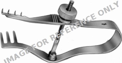 FINSEN Retractor (self-retaining), 70 mm (2 3/4"), 3 x 4 prongs, jaw depth: 11 mm, jaw width 13 mm, sharp, with ratchet