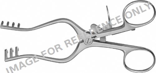WEITLANER Retractor (self-retaining), 130 mm (5 1/8"), 3 x 4 prongs, jaw depth: 17 mm, jaw width 17 mm, blunt