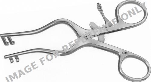 PLESTER Retractor (self-retaining), 125 mm (5"), 2 x 2 prongs, jaw depth: 17 mm, jaw width 8 mm, blunt