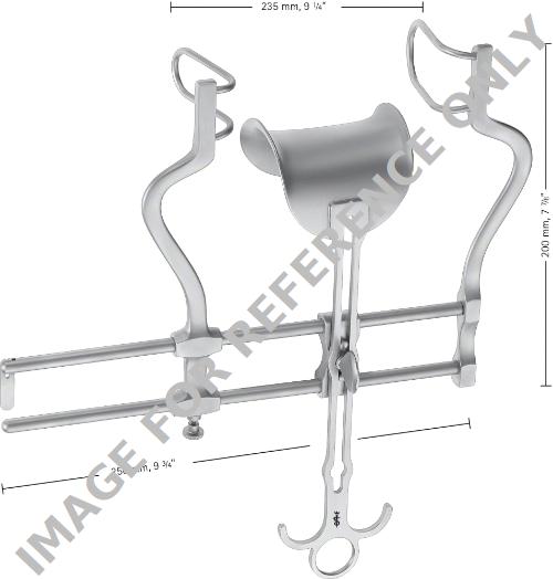 BALFOUR Abdominal Retr.self-retaining, complete retractor, 200 mm (7 7/8"), jaw depth: 63 mm, jaw width 30 mm, cons. of BV609R