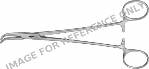 LOWER Dissecting a. Ligature Forceps (Gall Duct Forceps), curved, 180 mm (7"), serrated (longitudinal)