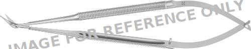 Micro Scissors, angled, 45 °, blade length: 10 mm, very delicate blade, 1 blade probe pointed, 165 mm (6 1/2"), round handle