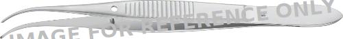 Tissue Forceps (Iris Forceps), curved, delicate, 100 mm (4"), jaw width 0.70 mm, 1 x 2 teeth